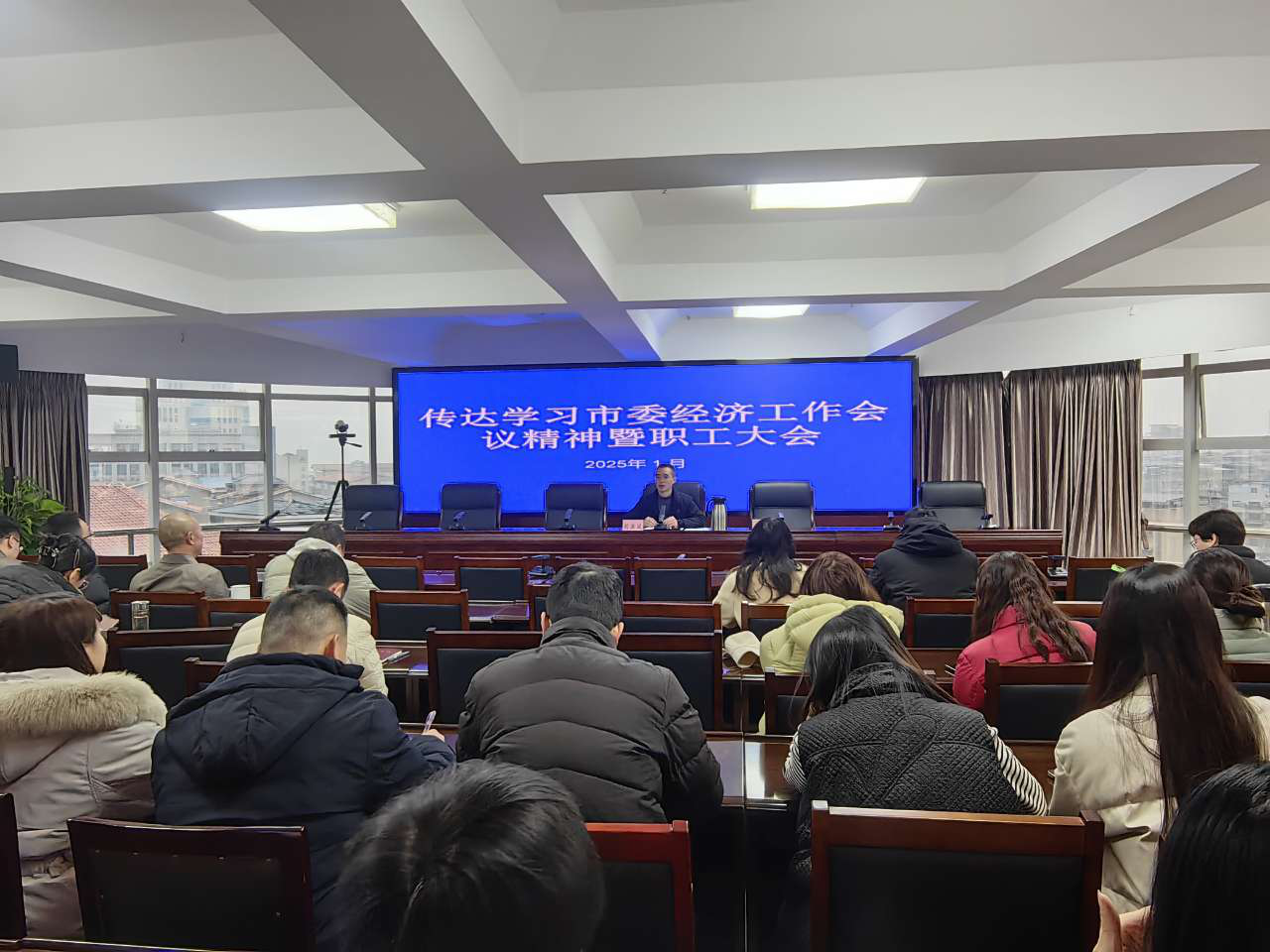 2025年1月9日上午,遂宁市财政局召开干部职工会议,传达学习市委经济工作会议精神,研究贯彻落实举措。党组成员、机关党委书记胡洪斌主持会议并讲话。