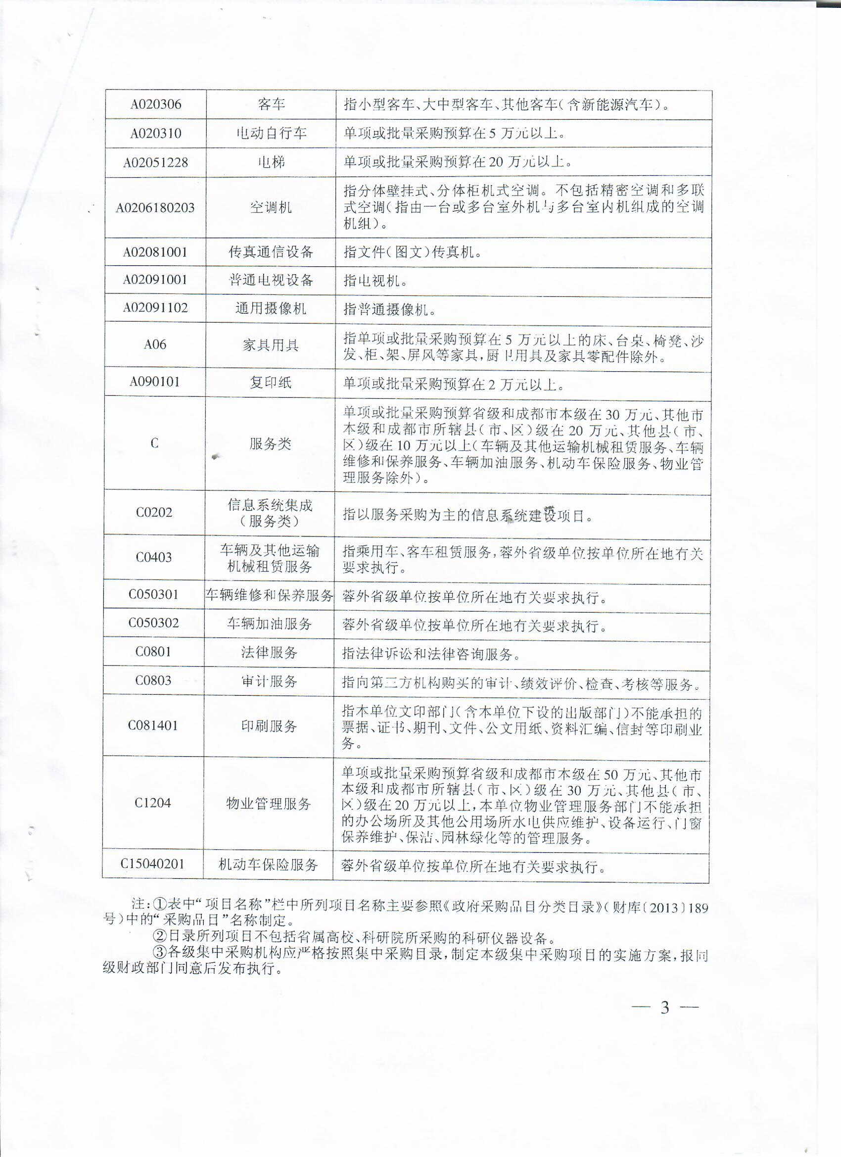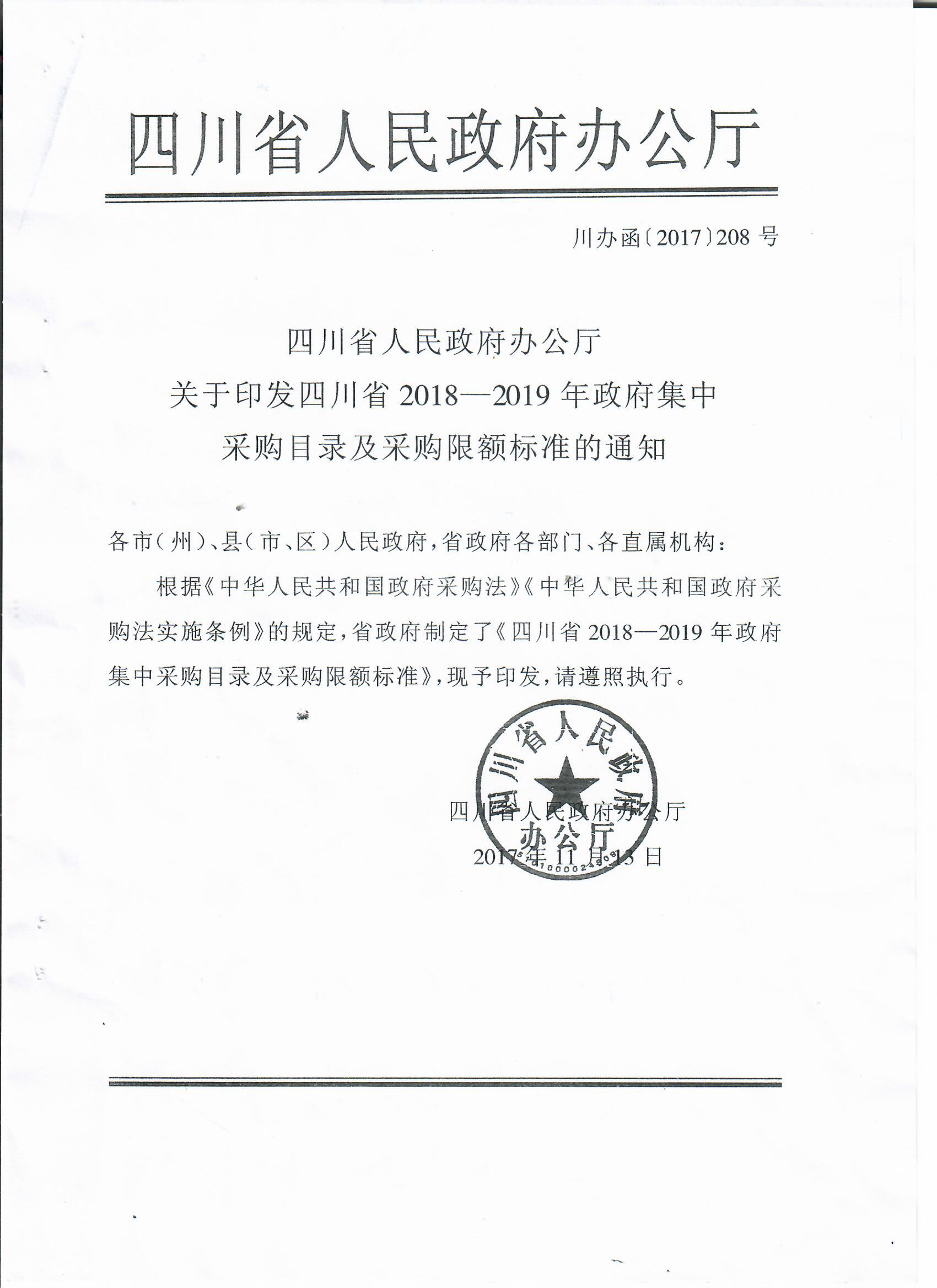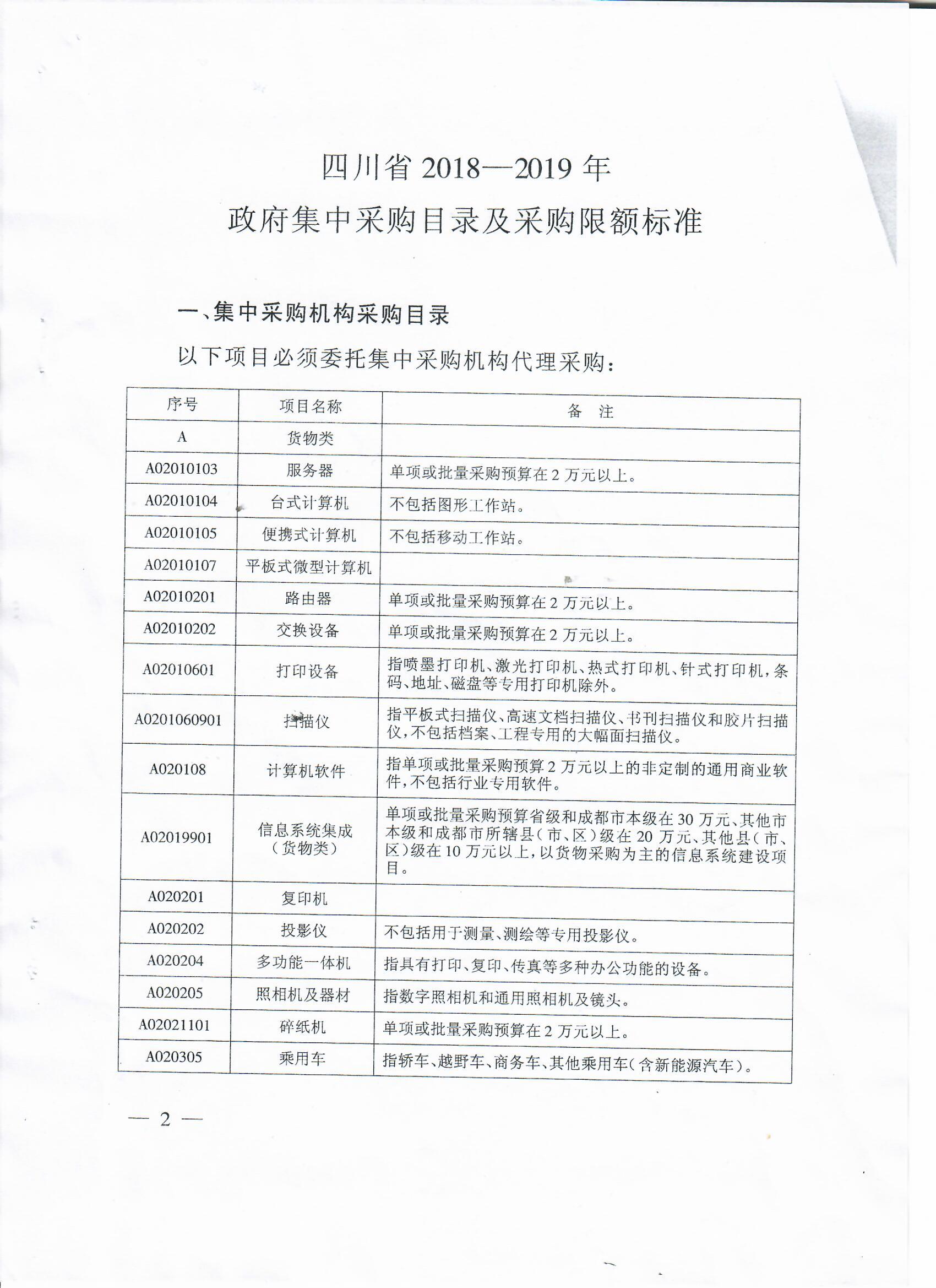 四川省2018——2019年政府集中采购目录及采购限额标准的通知