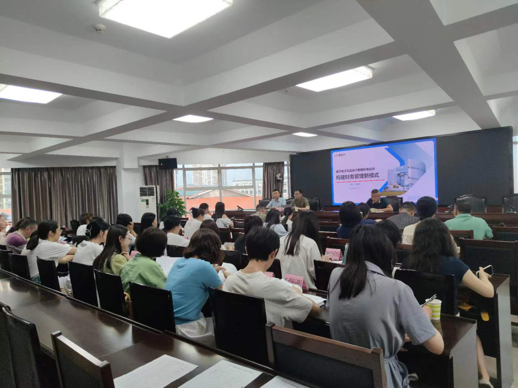 为深入贯彻党的二十大关于“加快建设数字中国,加快发展数字经济”“推动经济社会发展绿色化、低碳化”的战略部署,落实关于继续开展电子凭证会计数据标准化深化试点工作要求,推动加速构建财务管理新模式。2024年5月23日,遂宁市财政局组织召开全市直行政事业单位财务管理新模式专题会议,市直各预算单位共40余名财务人员参加本次会议。