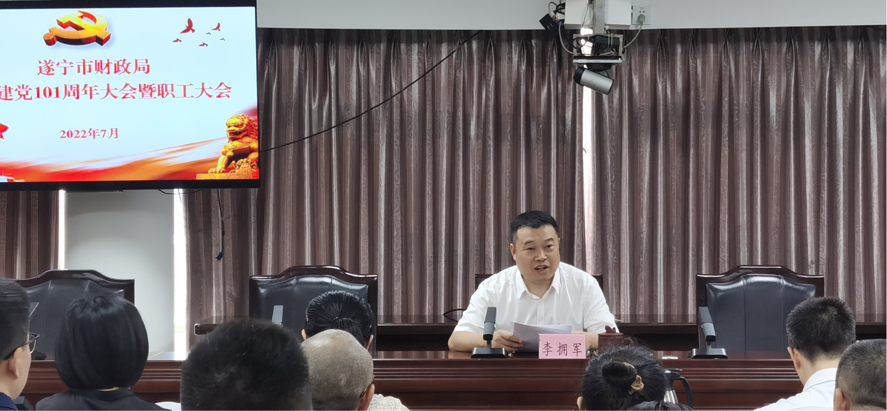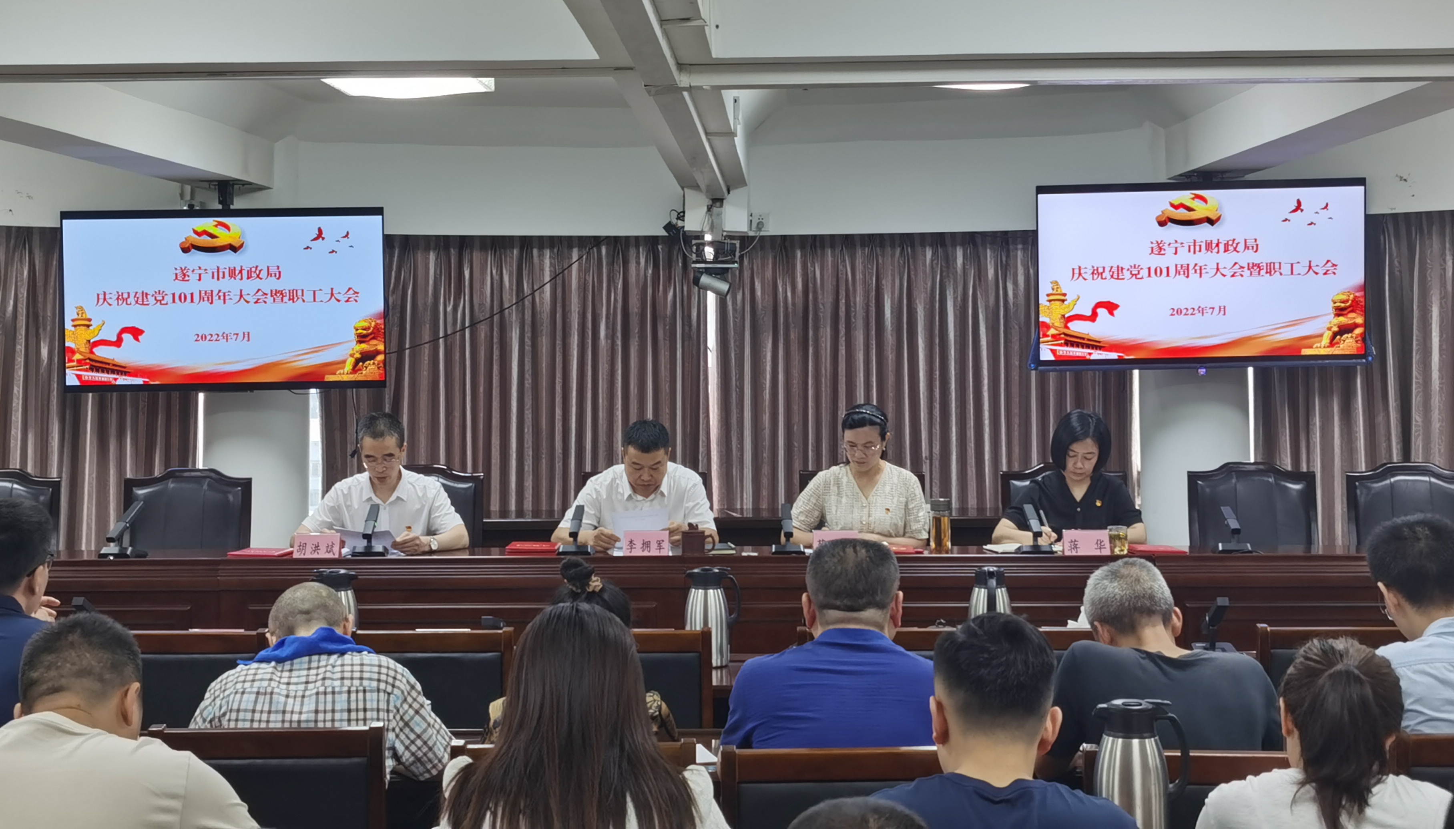 为庆祝中国共产党成立101周年,教育引导广大财政系统党员干部更加紧密团结在以习近平同志为核心的党中央周围,深刻领悟“两个确立”,坚决做到“两个维护”,激励党员干部不忘初心、牢记使命,勇于担当、砥砺奋进。近日,市财政局召开庆祝建党101周年党员大会暨职工大会,市财政局全体党员以及离退休党支部党员代表参加会议。