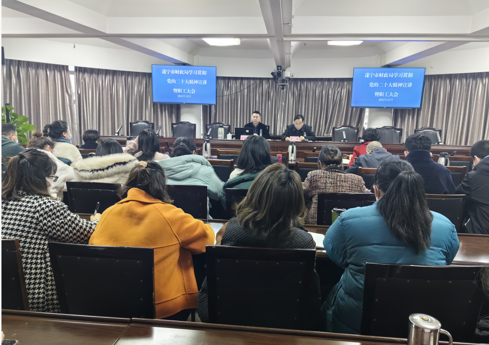 12月7日,为深入学习宣传贯彻党的二十大精神,引导党员干部把核心要义弄懂、把精神实质吃透,市财政局组织召开学习贯彻党的二十大精神宣讲暨职工大会。邀请市委党校、讲师团成员谭晓凌同志就学习贯彻党的二十大精神进行专题辅导。参加会议的有:在家局领导,机关及下属事业单位全体干部职工、离退休党支部党员代表,丰发担保公司职工。