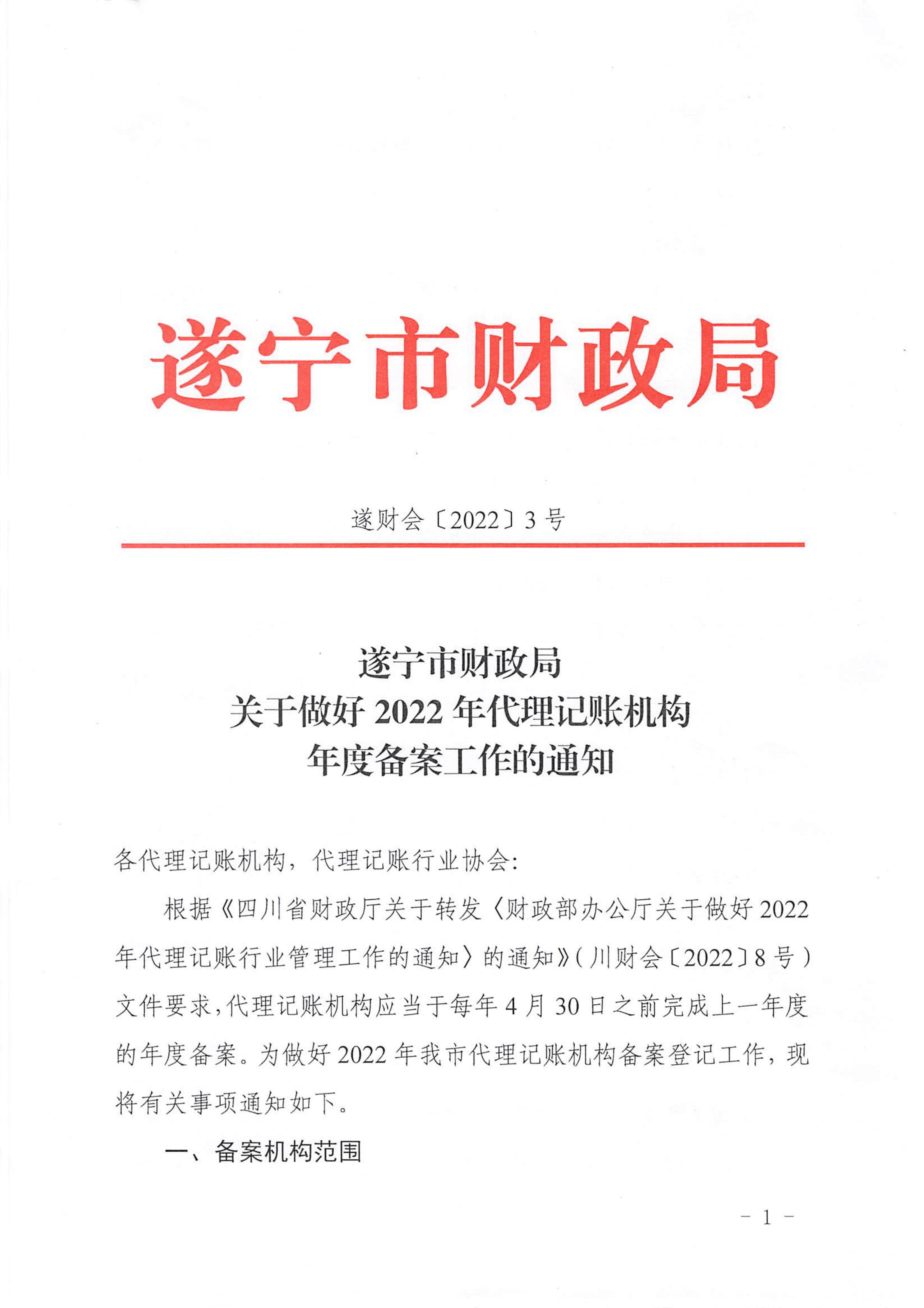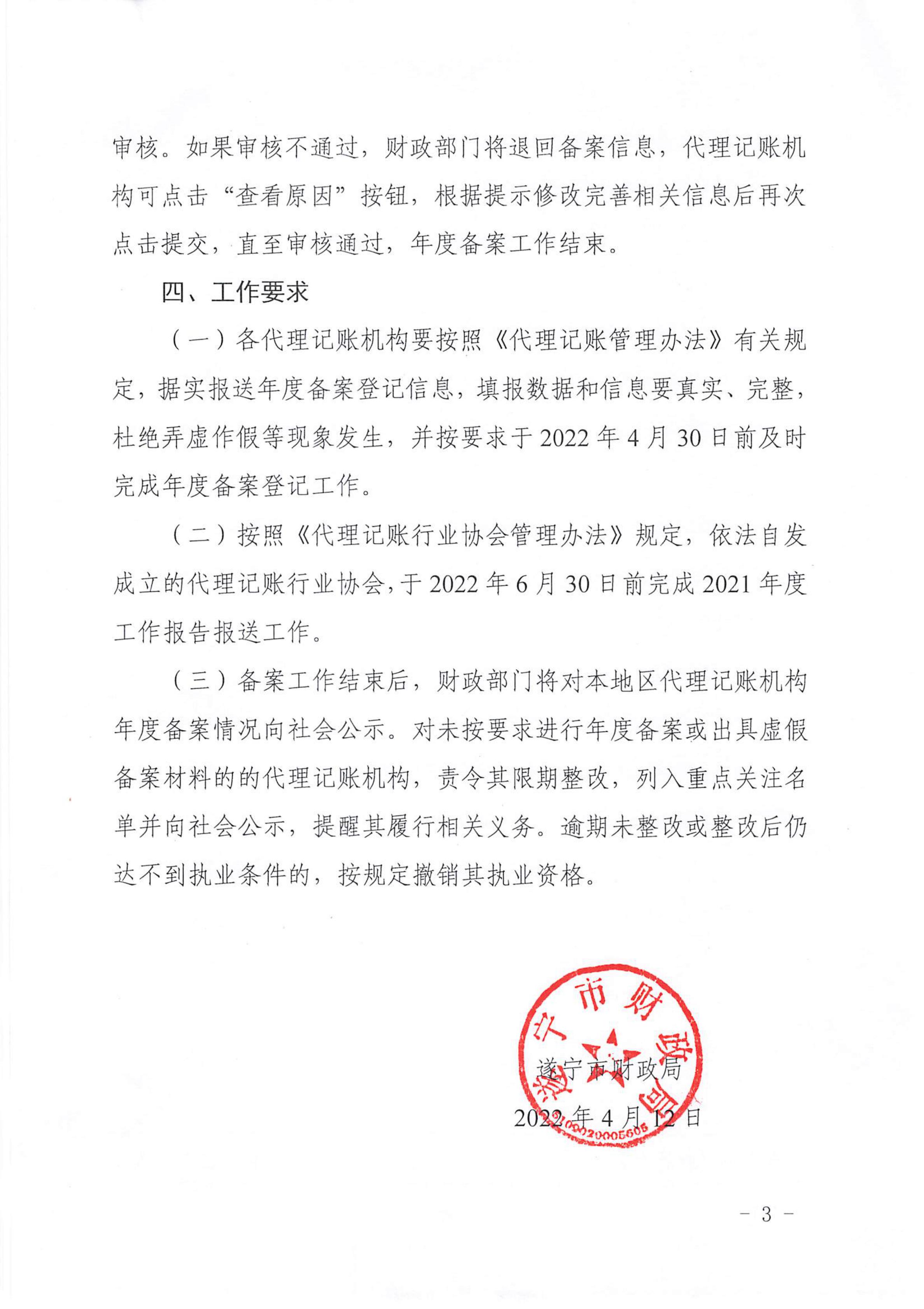 遂宁市财政局关于做好2022年代理记账机构年度备案工作的通知