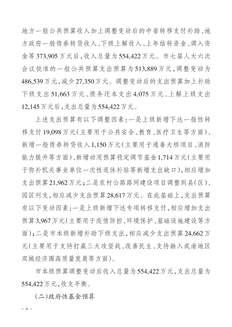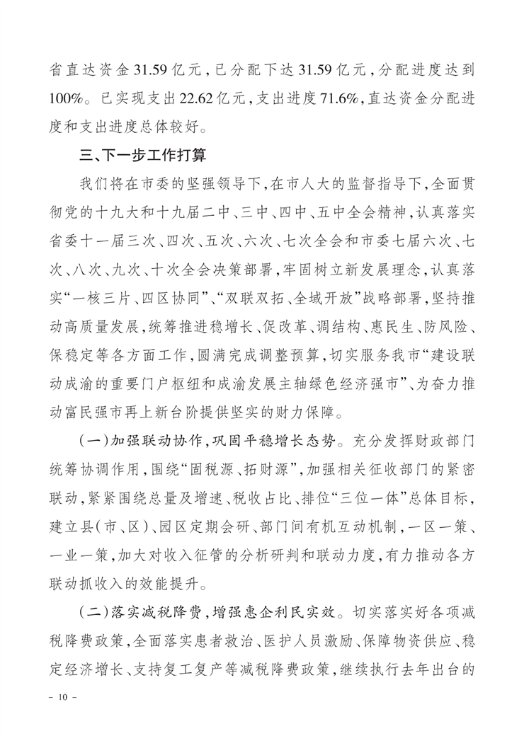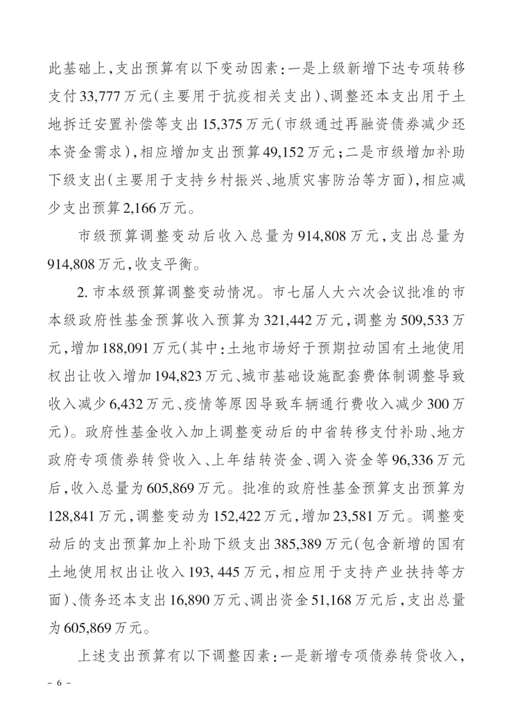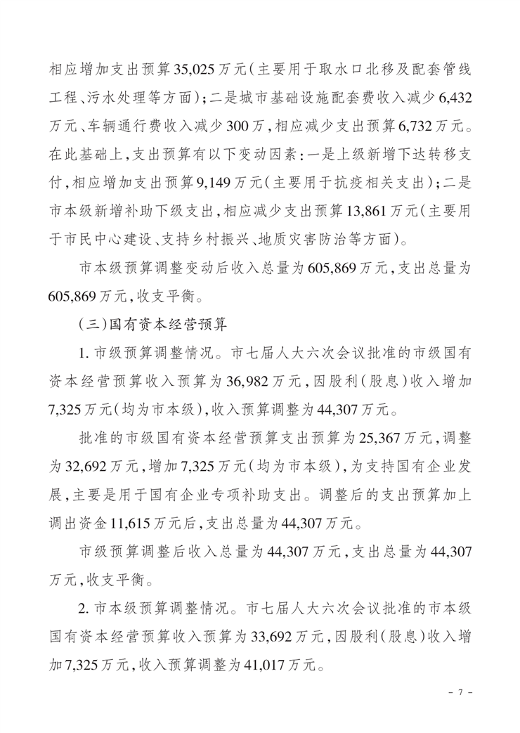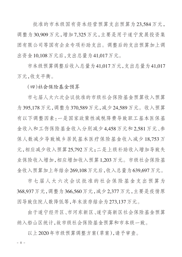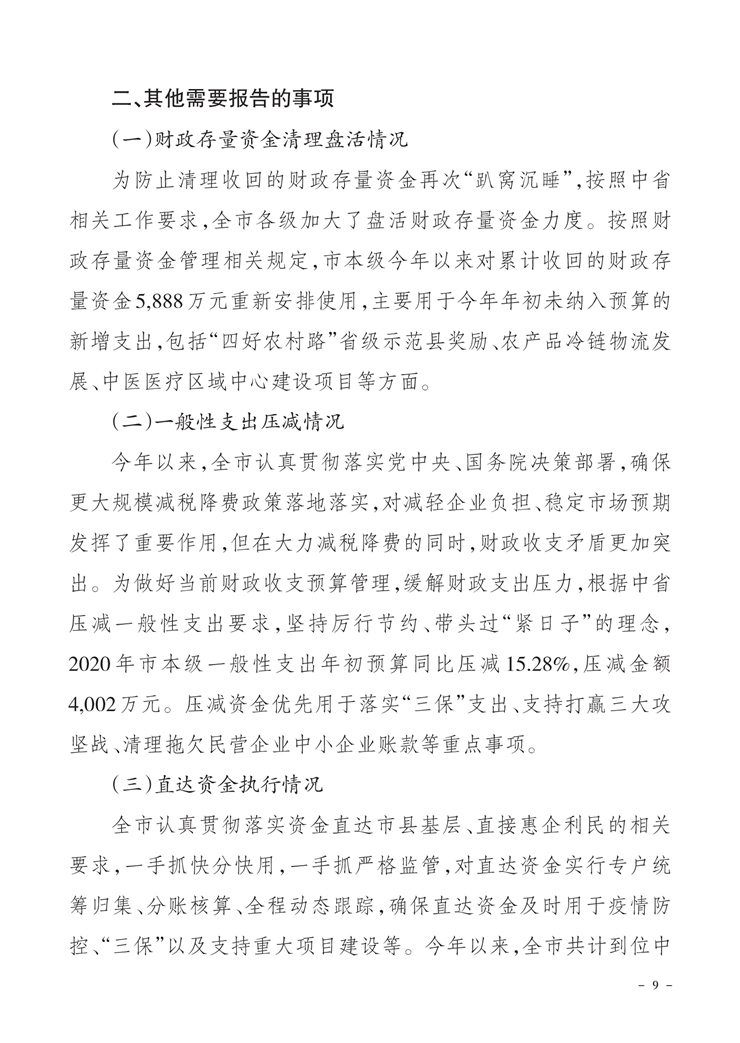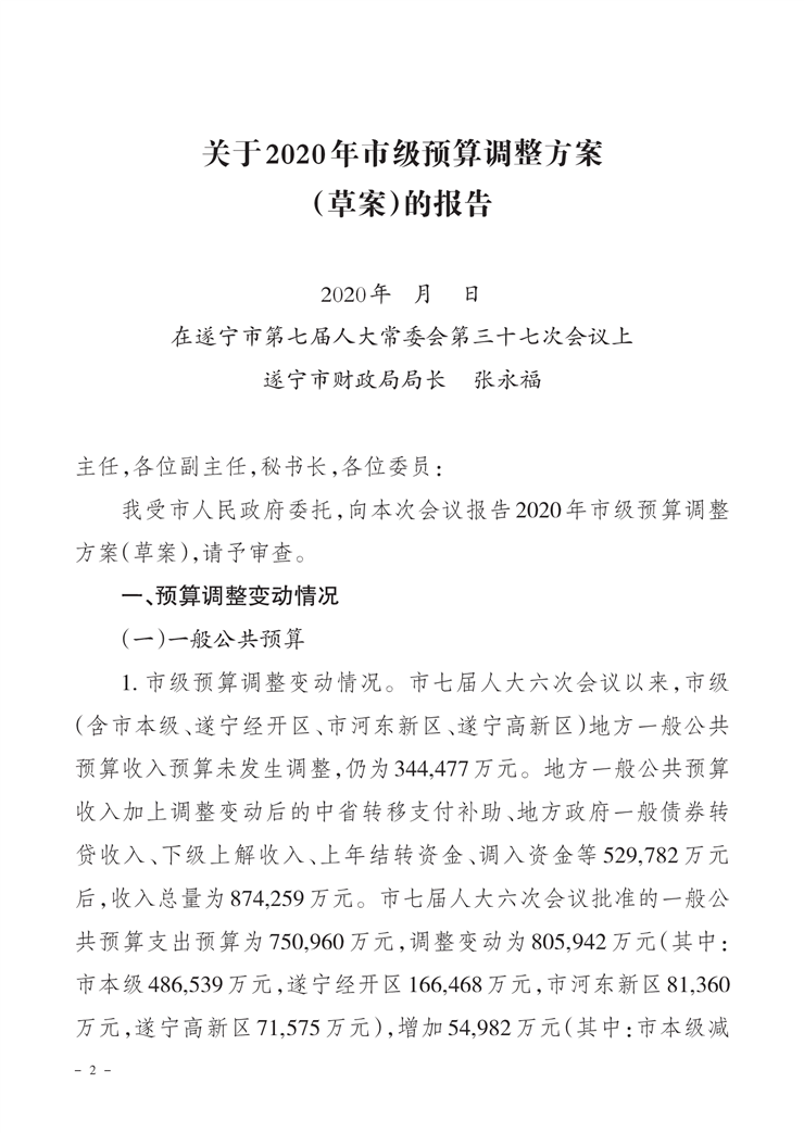 关于市级2020年财政预算调整方案(草案)的报告