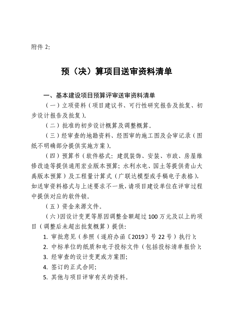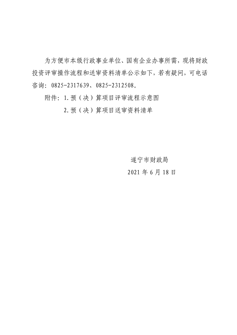 遂宁市财政局关于市本级预(决)算项目财评流程和送审资料清单的公示